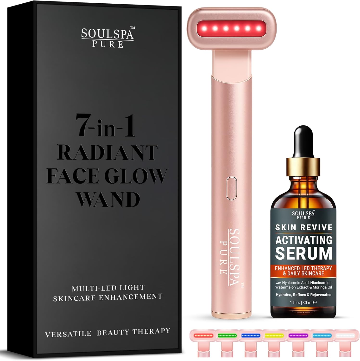 - 7-in-1 multifunctional facial wand with LED light therapy.